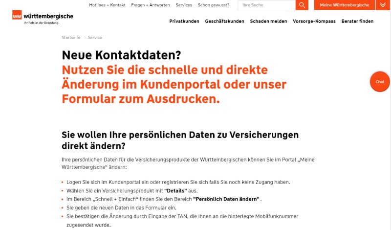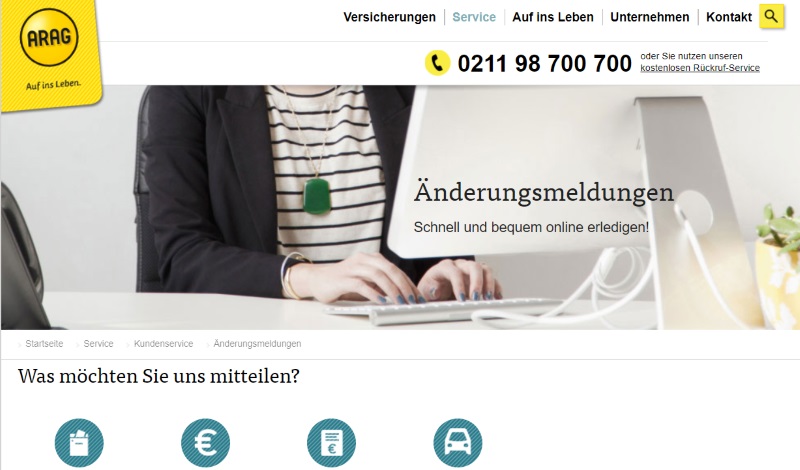 Die meisten Versicherer bieten für allgemeine Vertragsänderungen wie z.B. eine Adressänderung oder Änderung der Bankverbindung einen Online-Service über ihre Webseite an: